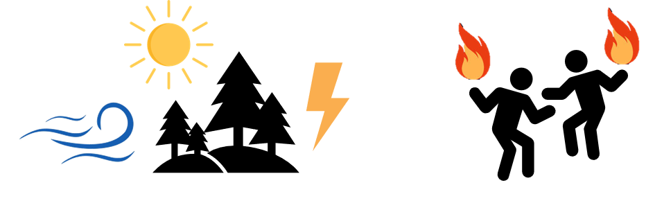 국외 산불 연구에서는 산불의 발생 원인을 낙뢰와 인위요인 두가지로 구분하기도 한다.
