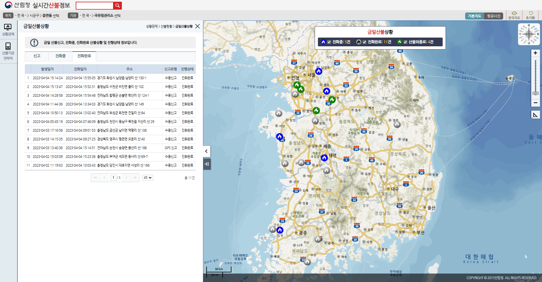 우리나라 산불은 대부분 입산자 실화 및 논밭두렁 소각에 의해 이루어진다. 산림청 '실시간산불정보'를 참고하면 이번주 3일간에만 11건의 산불이 발생했는데 모두 입산자 실화 및 소각에 의한 산불이라는 것이다. 전국에서 계속 불을 지르고 있는 셈이다.